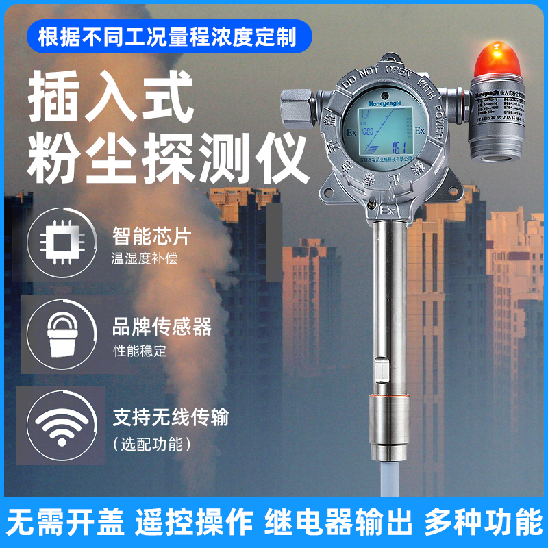 1、采用最先進的實用技術—專利改進型交流耦合技術,對粉塵的探測靈敏度高,線性度好,粉塵沾染探頭后不影響測量靈敏度,免維護免清理。